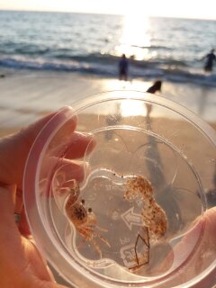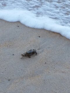 白い砂浜には沢山カニがいます。砂と同じ色ですごく素早くて、ちっちゃい(*´▽`*)