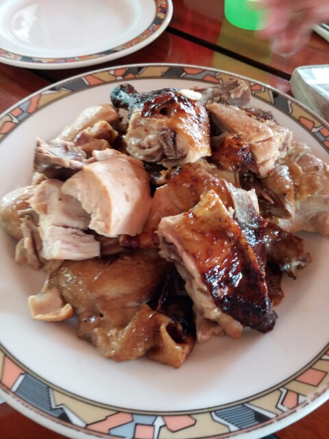 鶏の丸焼きを頼んだら…カットされてきた(そりゃーそうだ…ビジュアル的には1羽で見たかった・笑)