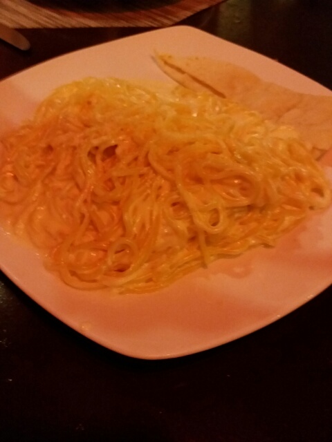 見かけは地味ですが、この4種のチーズのパスタが美味しかった!ラザニアも。