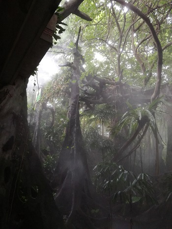 しょっぱなに、ここのお目当て、多分一番の見どころの熱帯雨林ゾーンに急ぎました。これが意外と怖くて(笑)、ドキドキする感じ。