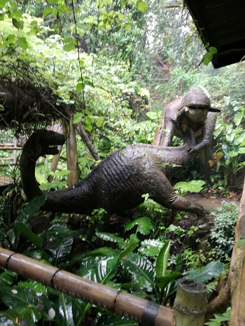 途中、恐竜が無数にいすぎて、しかも、コンクリートでできているので、自然と同化し始めていて、結構ビビります!