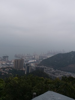 蛇口のコンビナート的な港、開発中の所、街並みなどが一望でき、この日はあいにく曇りでしたが、天気が良ければ香港も間近に見えるとのこと。