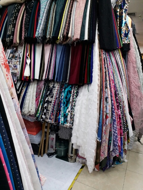 このように布問屋がずらりと並び、気に入った布を選んで洋服、スーツ、ドレス、何でも作れます。