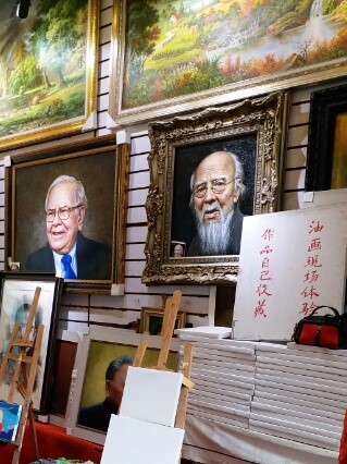 小さな画廊がひしめき合うように並んでいて、スマホを見ながら自画像を描いている人も。昔は写真を見ながらだったようですが、今はデータで家族写真などを送ってもらい、それを元に描いているようです。さすがに上手でした。それにしても、家族の自画像を飾るなんてなんて…きっとお金持ちのお宅なんでしょう…なかなかのサイズでしたので、普通の家にはおけなさそう( *´艸`)