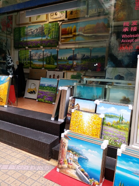 一口に絵画と言っても色々なタイプがあって、同じ図案もあちこちに売られていたりします。コピーなのかしら?そして、作品は油絵が多いです。