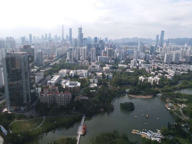 横に荔枝公園という有名な公園があります。さっきの40階の写真と比べると…。