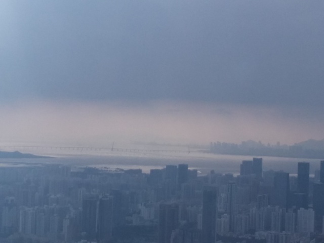 こちらの方面には遥か彼方に、いつも香港に行くときに渡っている橋がみえます。