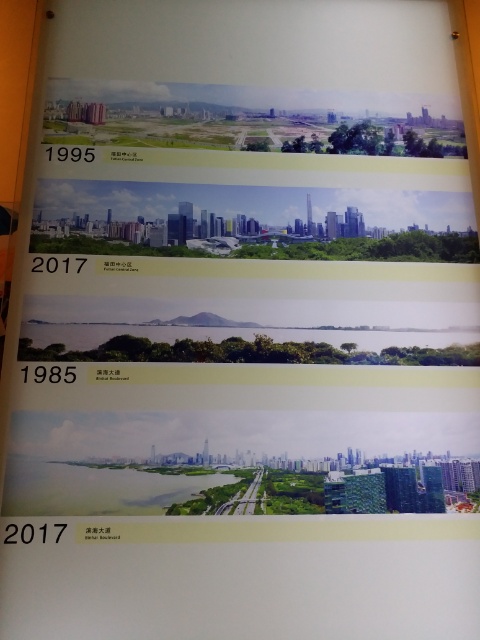 上下2ヶ所づつ、比較写真。上から2番目は福田の写真で、今朝ほどびっくりした巨大なビル(→すごいぞ深圳博物館!①)が中心に写っている建物と同じかな?と思うのですが、一番上の1995年の景色と比較して、この20年間の開発の速さ!!Σ(゚д゚lll)…景色が全く違います。