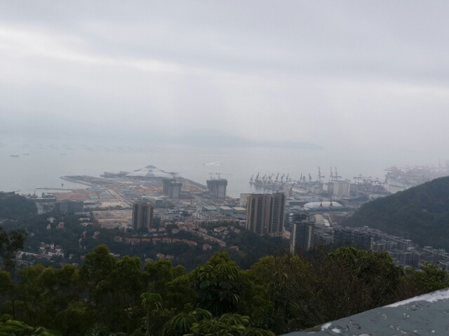 蛇口のコンビナート的な港、開発中の所、街並みなどが一望でき、この日はあいにく曇りでしたが、天気が良ければ香港も間近に見えるとのこと。
