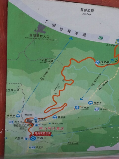 海上世界の駅からほどなく、南山という山があり、登れるというので行ってみる事にしました。