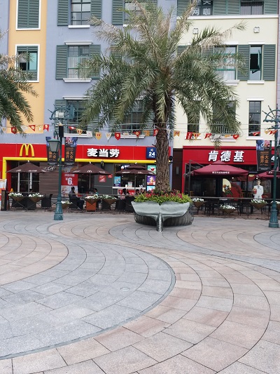 でも、ファーストフードもあって、マックとケンタが仲良く並んでいます。