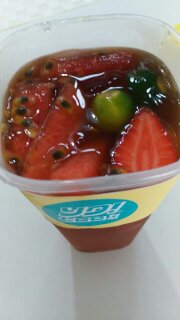 めっちゃおいしい(*´▽`*)。ちゃんとフルーツを食べるフォークまで装着済み↖