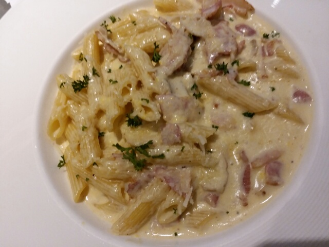 パスタ類は中国では失敗することが多いので、スパゲッティーではなくペンネを頼むようにしています。お味は普通にカフェメニューな味。普通が中国では貴重。カルボナーラは結構好きなお味です。