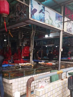 蛇口と違うのは、お肉は置いていないこと。あと、魚はあまりなくて、エビや貝など、どのお店も大体同じラインナップでした。魚はあっても鯉や淡水が多い感じ。でもなかなかカオスな世界で久々に中国を実感しました(=゚ω゚)ノ!!