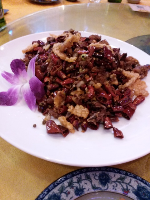次々と出てきたのですが、これまた予想通りの唐辛子の応酬に、辛いのは得意ではない私は(なのになぜ四川に来た・笑)、びっくりです。