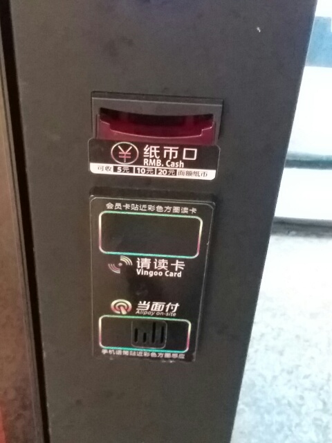 お札を入れる入口には5・10・20元札が使用できると書いてあります。
