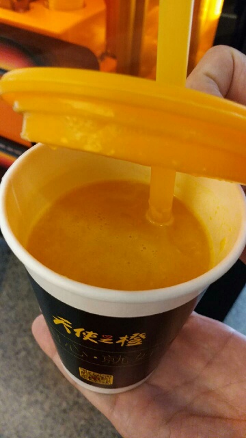 そのかいあって、しぼりたてオレンジジュース到着(*^▽^*)。