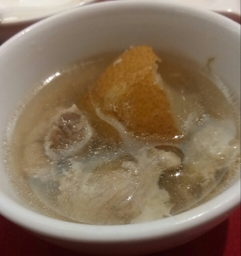 梨は1/8カットくらいで皮つき、結構大きめ。甘みが出て梨の香りもちゃんと残って面白いスープでした。