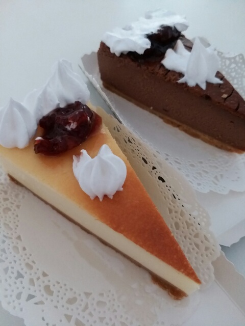 チョコチーズケーキと普通のチーズケーキを指さしオーダー。