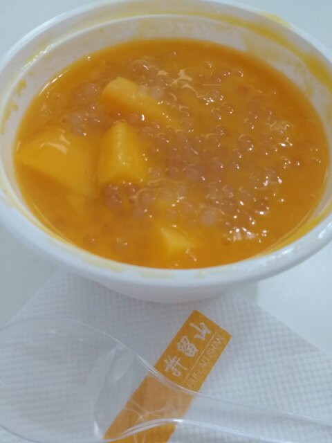 濃厚なマンゴージュースにタピオカと角切りマンゴーがたっぷり入っています。