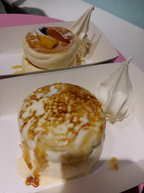 注文したのは原味梳乎厘(プレーン)20元(320円)と焦糖拿破仑梳乎厘(キャラメルのパンケーキ)22元(350円)。