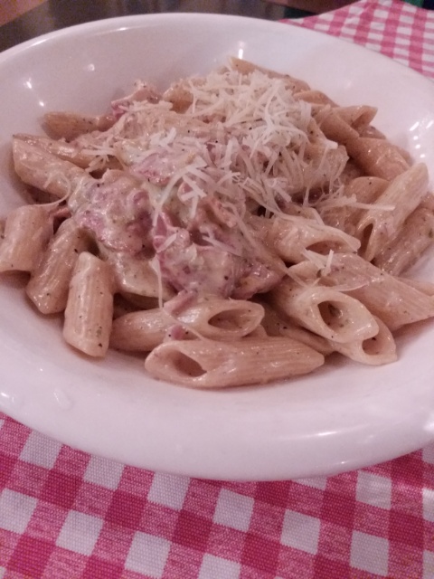 中国ではパスタにアルデンテの発想がないので(麺料理の様にしっかりゆでられてしまう)、パスタはしくじりがちなので、なるべくショートパスタを頼むようにしているのですが、このカルボナーラのペンネ(75元・1200円)は結構好きです(*´▽`*)