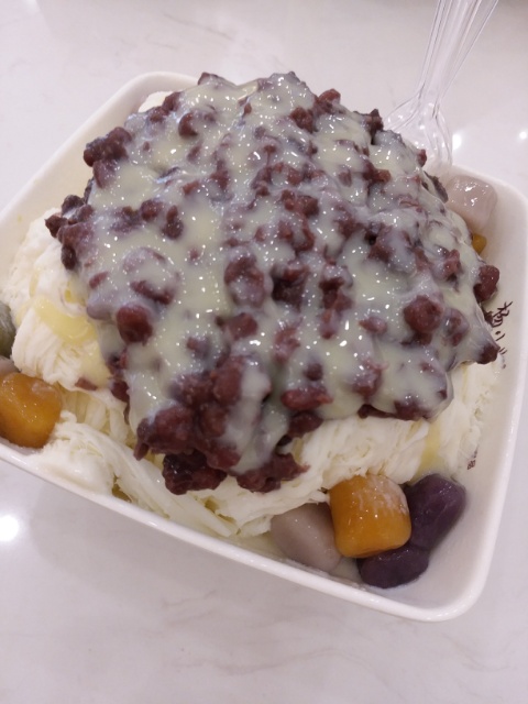 下のアイスが綿雪氷でふわふわ(数年前日本でも流行りましたよね。)