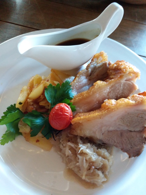 お肉は柔らかく、たぶんビールで作ったと思われるソースと合い、合間にザワークラウトの酸味を入れたりして。