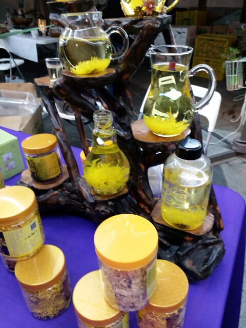 飴細工。 菊の花茶。