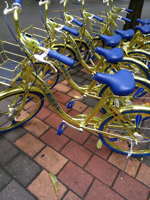 その一つ、アプリで借りられるレンタル自転車がただいま街中にあふれています。