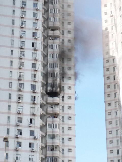 そもそもこのマンション、30階建てでここは半分の高さ(15階くらいかな?)らしいですが、下は店舗になっているので、実質的に2階ですでに5階分くらいの高さ。はしご車が来ても…。という感じ。