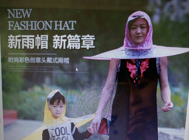 うわーすごい斬新すぎる―!!どう着用してもおしゃれ感ゼロ!!(≧▽≦)!!絶対“ニューファッションハット”…ではない(笑)。そうね、手をつなげるし、カバンとかも楽?レインコートじゃダメ?周りの人との距離感とか…次々に湧き出る疑問( *´艸`)