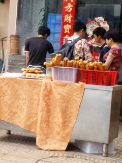 脱線しますが、朝からローカルのこんなお店は列ができていて、だいたい甘い豆乳+油条(ヨウ ティヤオ / yóu tiáo)←揚げパンだったり、麺や肉まんを食べている子供や大人をよく見かけます。