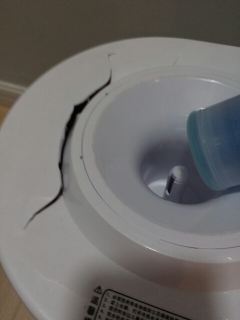 1本20キロ近いボトルを本体の突起にぶっさす(失礼;…)さしますと、フタに穴が開いて水が出る仕組みなのですが、気合と共に持ち上げたボトルの重みと勢いでか、使い始めてから早々に土台のプラ部分が割れました(;´∀`)