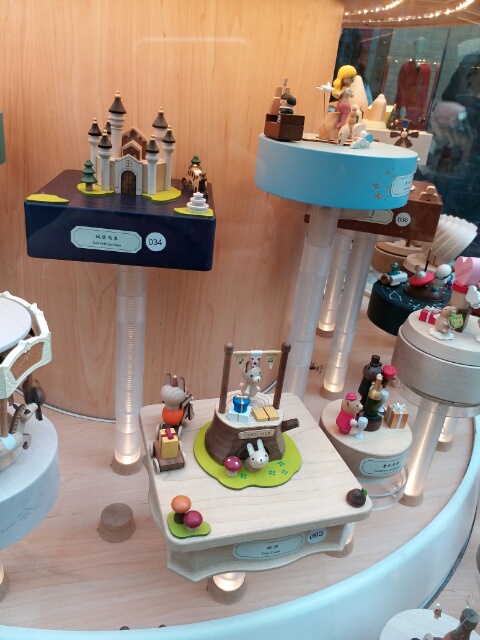 いくつかの店先に飾ってあり、動く木製オルゴールでとーってもかわいくて種類が多い!!