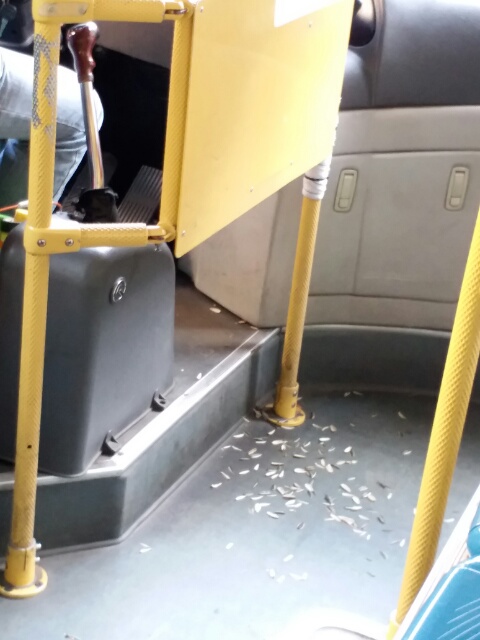そうそう、この間はバスの中にヒマワリの種の殻…。
