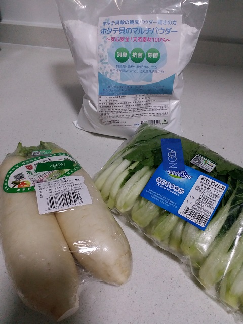 野菜洗い洗剤。こちらは100%ホタテの貝殻でできています。なので無害。