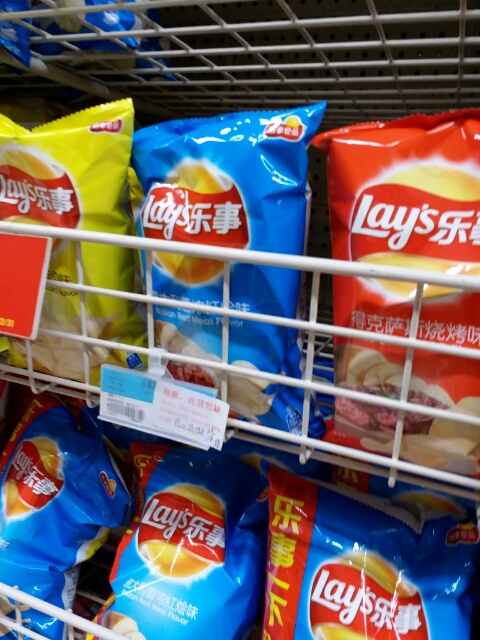 これは“Lay's”というアメリカのメーカーのポテトチップ。どこのスーパーにも大抵おいています。