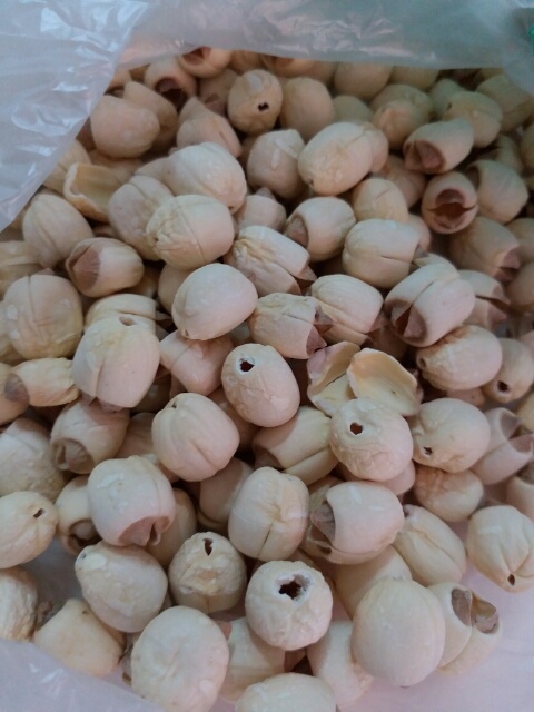 食べ方としては、よく日本でも見かけるのはやはり中華デザート。中華風のお汁粉だったり、月餅の餡に入っていたり、ハスの実餡のおまんじゅうだったり…。甘く煮ようかと思ったのですが、家族受けも悪そうなので(^▽^;)、とりあえずそのまま…。