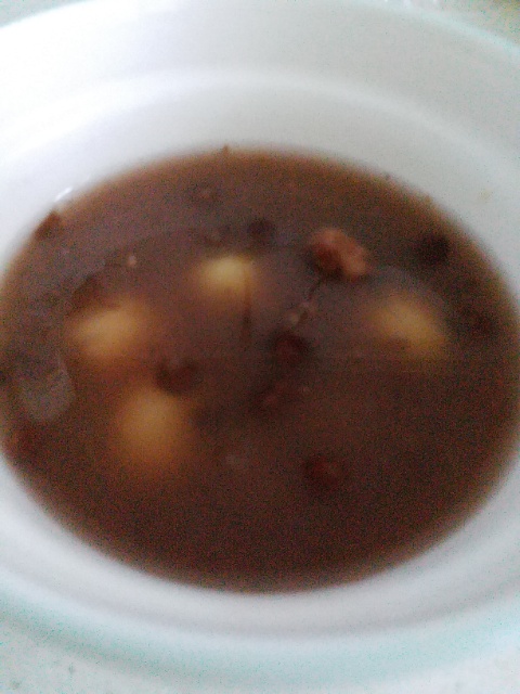 まず日本から持ってきた“レトルトおしるこ”(フリーズドライでお湯をかけるだけでできるヤツ!!)で「ハスの実入りのおしるこ」