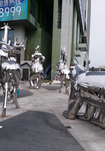 なんだか“ノアの箱舟”的に神々しい動物達の銅像がビルを見上げています。