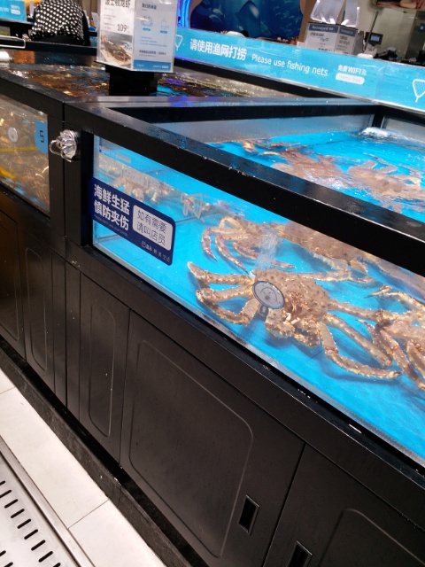 店内には、その他のローカルスーパー同様、水槽でわんさか生きた魚介類を売っているのですが、すごいのが、その場で捕って、調理をしてくれるのです。