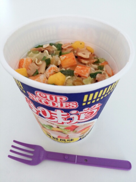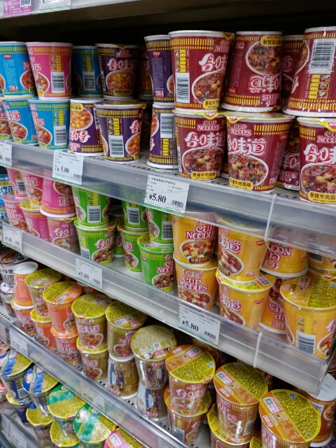 この日、カップヌードルの方が安売りで、5元(85円…日本の安売りくらいかしら?)だったのです。…まあ、いつも5.8元(98円)くらいですが…(;^ω^)