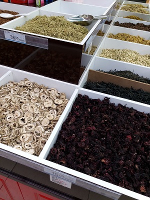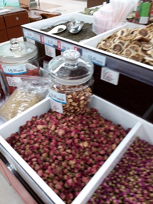 茶葉だけでなく、バラのつぼみや柑橘系の果物(柚?レモンかな?)、クコの実など色々な種類があり、カスタマイズできるのですね。街中に、薬用のお茶(風邪の時用のお茶とか)屋さんもみかけますし、透明なマイボトルに茶葉を入れて持ち歩いている方も沢山見かけます。