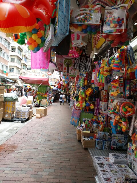 屯門から地下鉄を1回乗り換え約1時間。深水埗という街に到着。ここは問屋街です。
