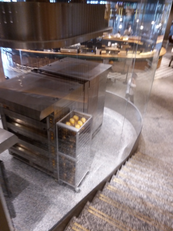 中央にはオーブンもあり、これもガラス張りでそれに沿って螺旋階段が。