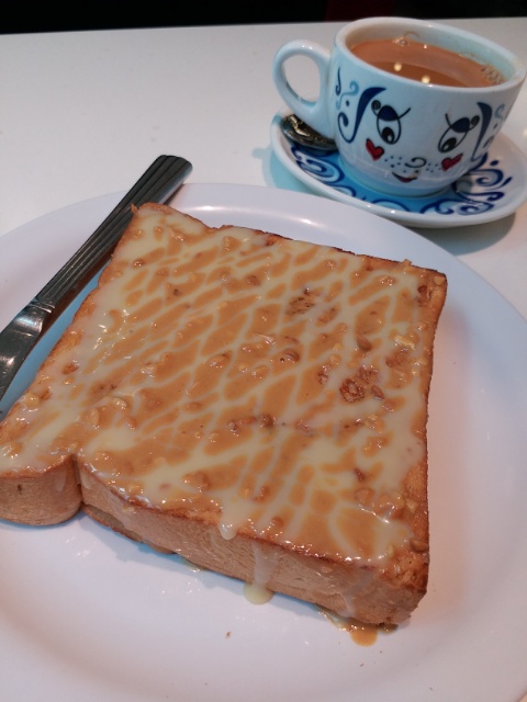 奶醤厚多士(ピーナツバタートースト)16元(260円)