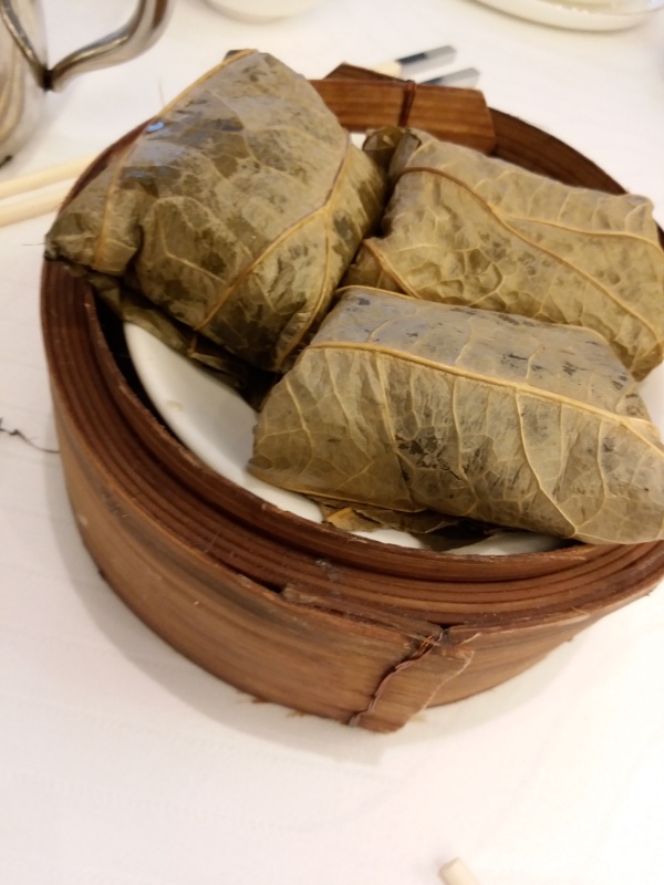 チャーシューまんの中身の様なのがもち米にサンドされ、なかなかおいしかったです。たぶん、干し貝柱も入っている感じ。