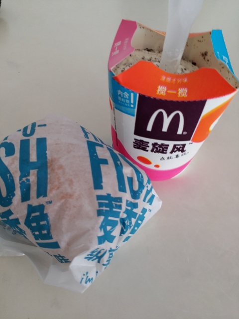 その中に、合計28元(450円)が16元(260円)で買えるフェレオフィッシュとオレオソフトのセットを頼んでみることに(=゚ω゚)ノ