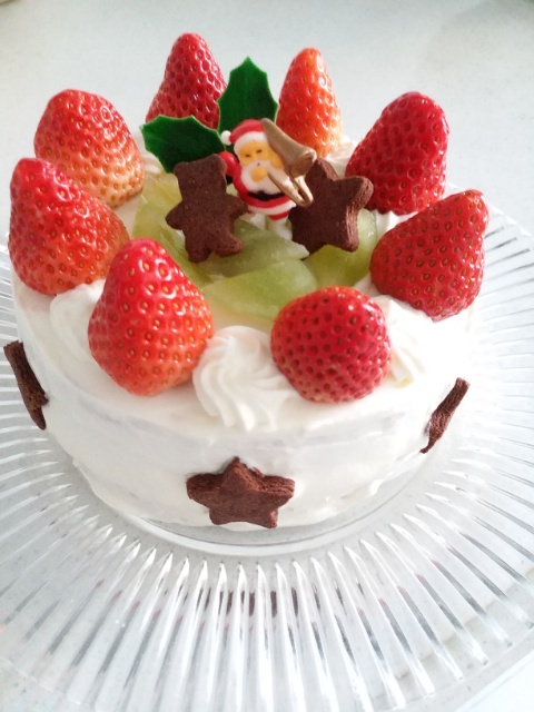 いつもクリスマスはチョコケーキ(ブッシュドノエル)が定番だったのですが、私がショートケーキが食べたいがために変更です(^_^;)(机も白くて見えにくいですね;)